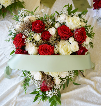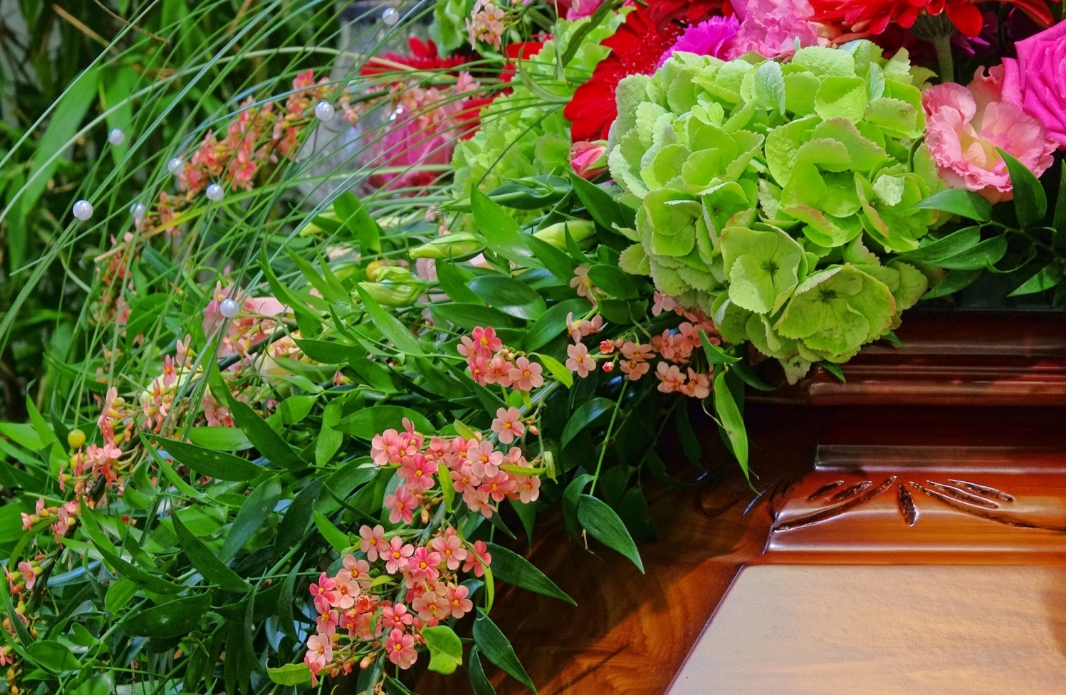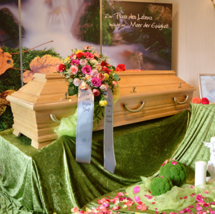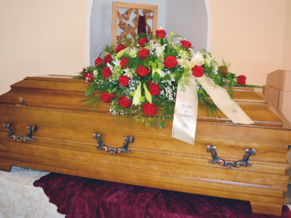 die Dekoration für die Aufbahrung im geöffneten oder geschlossenen Sarg