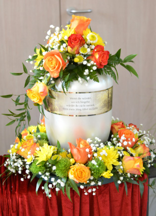 die Dekoration unserer eigenen Trauerhallen sowie auf den der umliegenden Friedhöfen